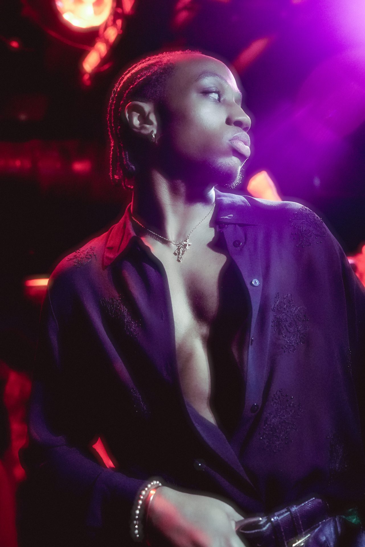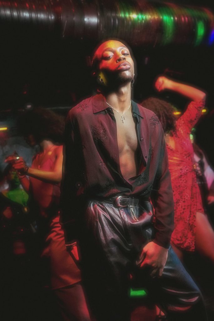 The skin tight clothing that we wear in the club, mirrors the restriction and suffocation we feel “in the real world”– putting up a front for the sake of social acceptance– but here, it feels like liberation.